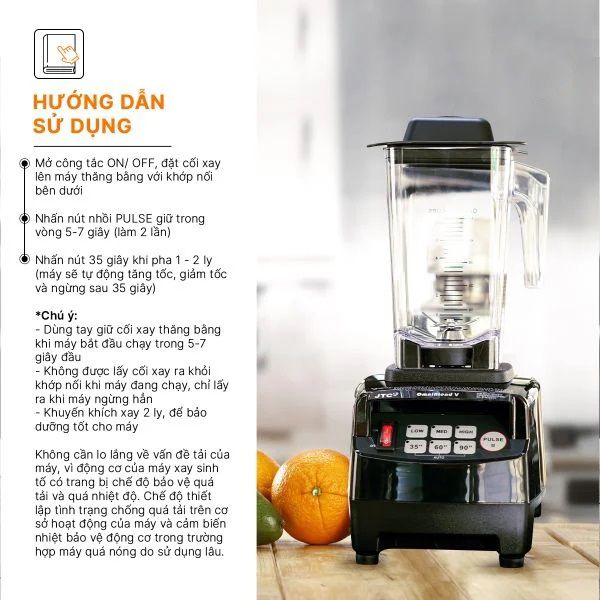 Lưu ý an toàn: Không chạy máy quá 2 phút liên tục, và luôn tháo phích cắm khi không sử dụng. Với những ai mới bắt đầu, hãy tham khảo sách hướng dẫn đi kèm để khám phá thêm 20 công thức độc quyền.